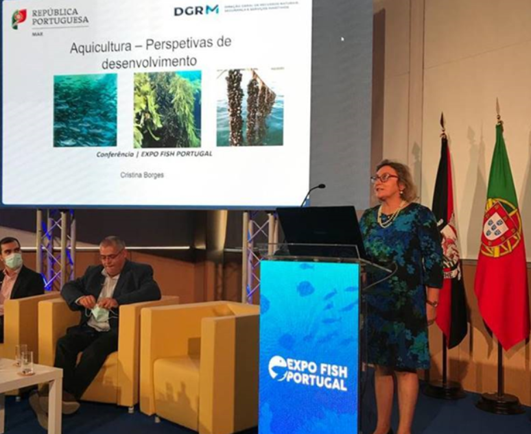 No 2º dia da feira, no âmbito das conferências em formato híbrido, que contou com as presenças da Sra. Secretária de Estado das Pescas, Teresa Coelho, e com o Secretário de Estado da Internacionalização, Eurico Brilhante Dias, a DGRM participou presencialmente com a intervenção da Chefe de Divisão de Aquacultura, Cristina Borges, no painel 4 sobre o tema “Aquicultura -Perspetivas de desenvolvimento”.