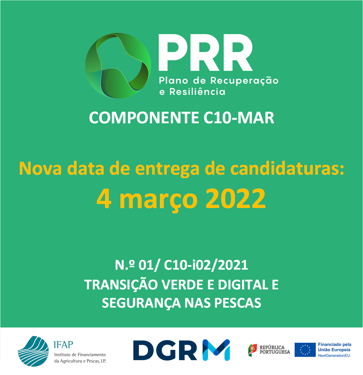 Vai ser alargado o prazo para apresentação de candidaturas ao PRR, Aviso n.º 01/C10-i02/2021, até às 17:00 horas do dia 4 de março de 2022.