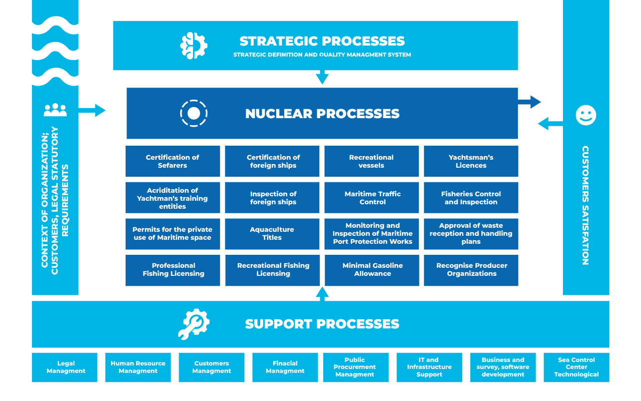 In 2017 the DGRM extended the scope of the QMS to the remaining operational activities of the flag State, namely the "Ship Certification", in accordance with the ISO 9001: 2015 standard, having obtained on 22 December 2017 the certification for the "Flag State Operational Activities for the Certification of Seafarers and Ships ", and also conferred by SGS ICS - International Certification Services.
